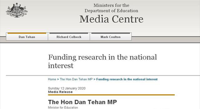 聯(lián)邦教育部官網(wǎng)12日?qǐng)?bào)道,聯(lián)邦教育部長(zhǎng)特翰(Dan Tehan)宣布,政府將通過(guò)澳洲研究委員會(huì)(ARC)為20個(gè)新的研究項(xiàng)目提供950萬(wàn)元的資金。獲資助的項(xiàng)目包括:蒙納士大學(xué)提出的調(diào)查確定葡萄酒地理標(biāo)志所需的標(biāo)準(zhǔn)、證據(jù)和程序,這些標(biāo)準(zhǔn)、證據(jù)和程序用于貿(mào)易協(xié)定和法律糾紛。澳洲天主教大學(xué)提出的開發(fā)一個(gè)在線工具,為數(shù)字社會(huì)中的兒童識(shí)別和分享最佳實(shí)踐,包括數(shù)字媒體生產(chǎn)、網(wǎng)絡(luò)安全教育、數(shù)字游戲和數(shù)字育兒等領(lǐng)域的新資源、材料和項(xiàng)目。