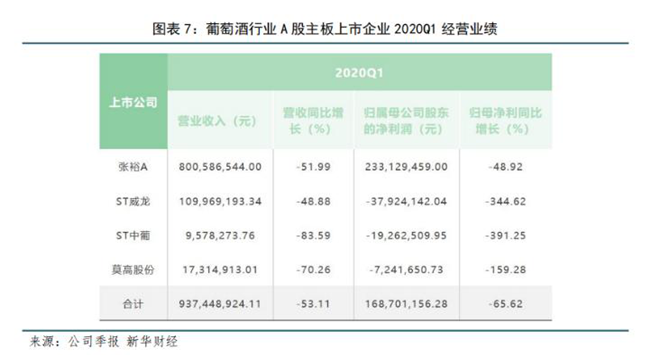 新冠肺炎疫情對于本就脆弱的葡萄酒行業(yè)來講,無疑是一記重錘。2020年第一季度,四家葡萄酒企業(yè)總營收9.37億元,同比降低53.11%;實(shí)現(xiàn)歸母凈利1.69億元,同比降低65.62%。只有張裕一家歸母凈利維持正值,其余皆為虧損。業(yè)內(nèi)人士曾表示“葡萄酒行業(yè)'短期不樂觀',2020年將是國內(nèi)葡萄酒市場近十年來最艱難的一年。”