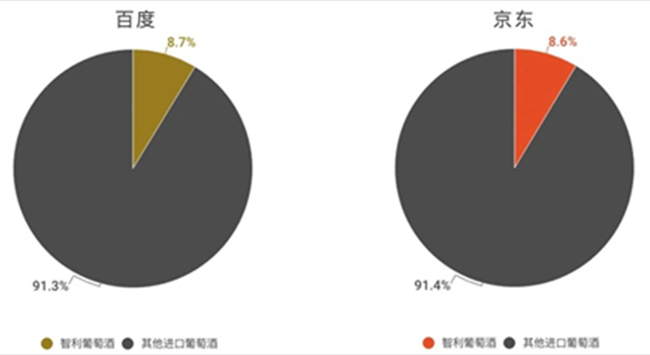 智利葡萄酒在“酒咔嚓”合作平臺百度和京東上的搜索量占比