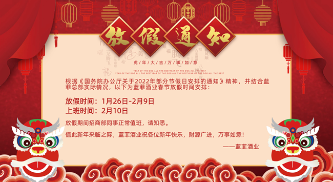 新年將至| 藍菲酒業(yè)向廣大經銷商恭賀新春!